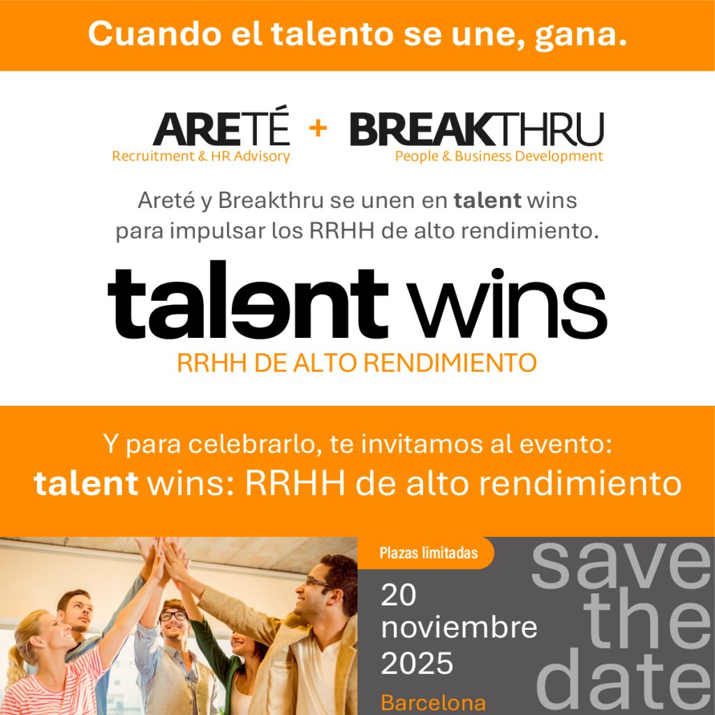 Areté y Breakthru se unen en talent wins para impulsar los RRHH de alto rendimiento. Y para celebrarlo, te invitamos al evento: talent wins: RRHH de alto rendimiento